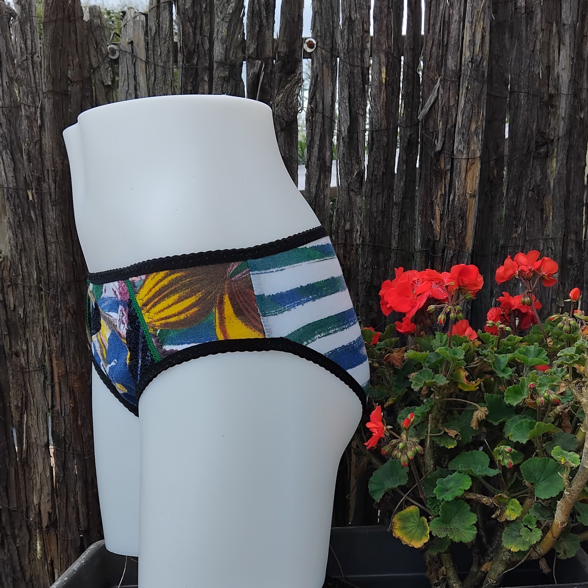 En sélectionnant cette pièce unique, vous optez pour une lingerie originale, confortable et respectueuse de l'environnement. Chaque culotte raconte une histoire et contribue à réduire les déchets textiles.