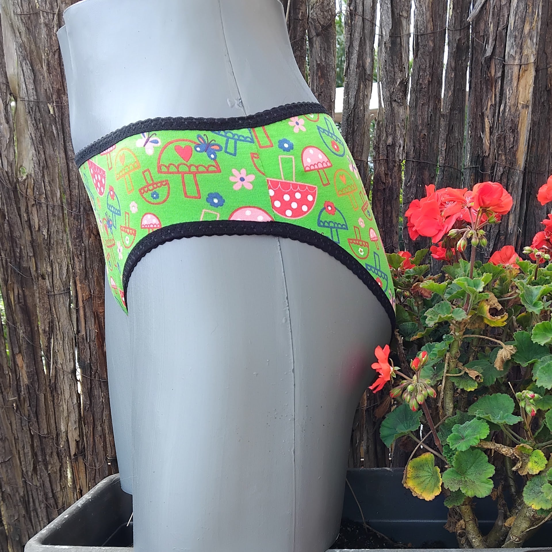 Cette culotte faite main a été créée à partir d'une chute de tissu, lui donnant ainsi une nouvelle vie.